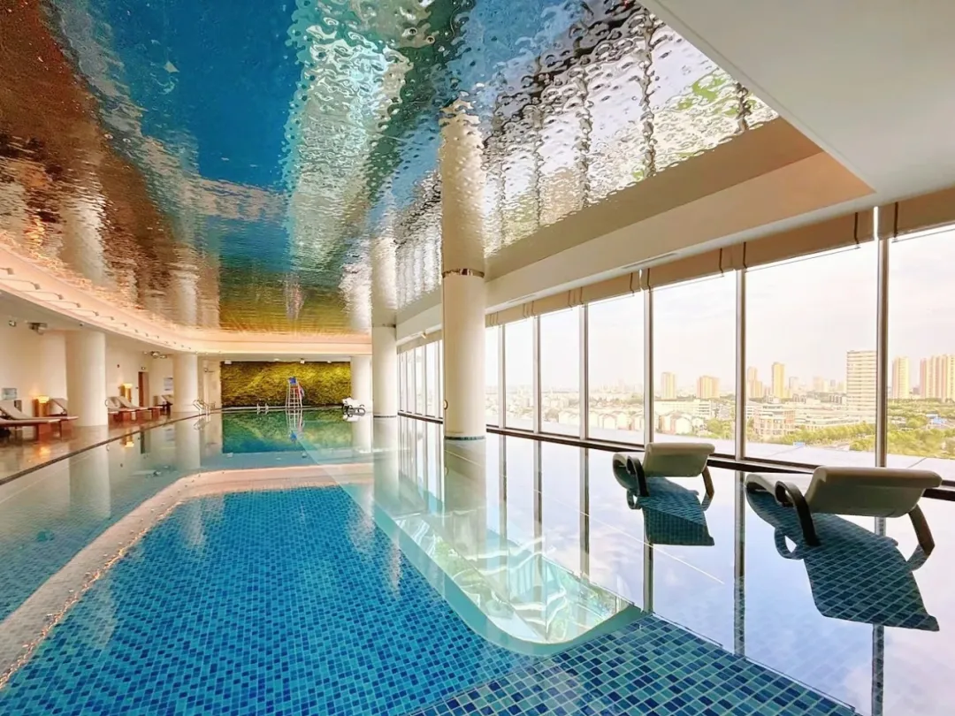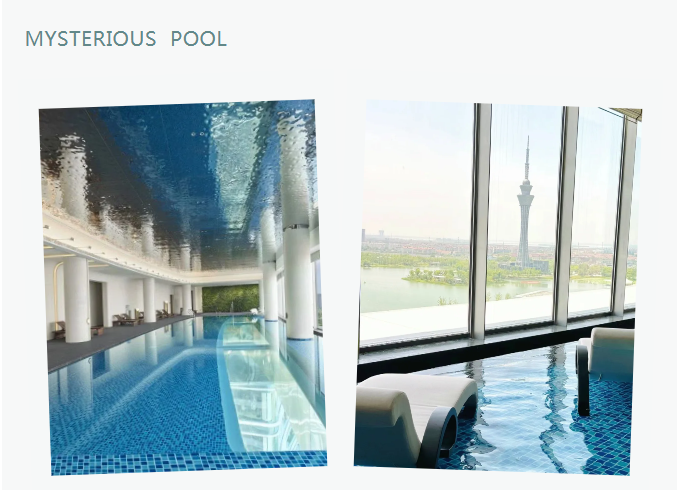 “抬頭仰望是天空,低頭俯瞰皆是江南美景”。說到這座高達(dá)43.95米的透明懸空泳池,它擁有整個(gè)酒店巨佳的觀景視角。