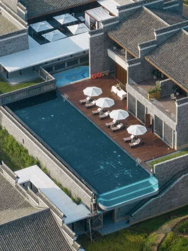 在京山農(nóng)場,當(dāng)然不能錯過這座占據(jù)谷莊度假酒店C位的戶外局部透明泳池。這里的水質(zhì)清澈透明,暢游其中,仿佛每一劃臂都能感受到大自然的擁抱,每一呼吸都是山水間的清新氣息……