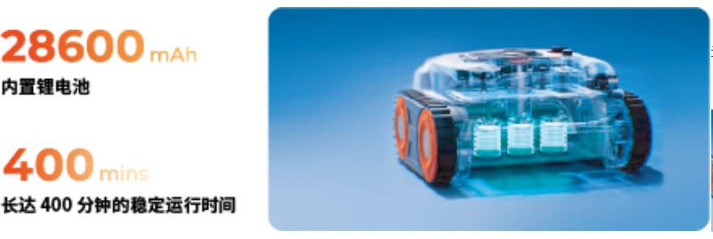 搭載28,600mAh高容量鋰電池,具備長(zhǎng)達(dá)400分鐘的連續(xù)工作能力,確保泳池清潔工作的高效與持久。