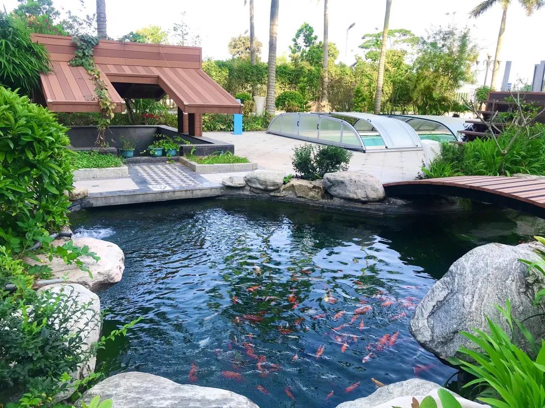關(guān)于別墅魚池設(shè)計(jì)選址,我們應(yīng)選擇陽光適宜,又能遮陰的位置,同時(shí)便于管理觀察的位置,因?yàn)樵陉柟獗裣?,魚池微生物細(xì)菌繁殖旺盛,容易導(dǎo)致水中溶解氧、水溫等因子的急劇變化,最后導(dǎo)致水質(zhì)易渾濁,藻類滋生,異味等情況。