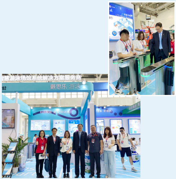 展會期間,中國體育用品業(yè)聯(lián)合會主席李燁、世界休閑體育協(xié)會輪值主席、首都體育學院教授博導李相如教授等領導蒞臨戴思樂展位參觀指導,并對戴思樂在“低碳智慧游泳場館”建設方面的成果,以及健康、低碳、智慧的全域水系統(tǒng)解決方案給予了充分肯定和高度認可。