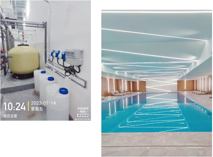 無論是在設(shè)計、建造,還是營運管理,該泳池項目始終將“安全與健康”貫穿兌現(xiàn)的全過程。其中,我們非常關(guān)注泳池水質(zhì)、水溫和空氣質(zhì)量等方面對人體的影響,通過運用逐夢深藍®低氯水處理技術(shù)、格拉利®空氣源節(jié)能加熱系統(tǒng),以及普派克®恒溫恒濕系統(tǒng)三大核心技術(shù),實打?qū)嵉貫闃I(yè)主打造出一個安全、健康及舒適的游泳環(huán)境。