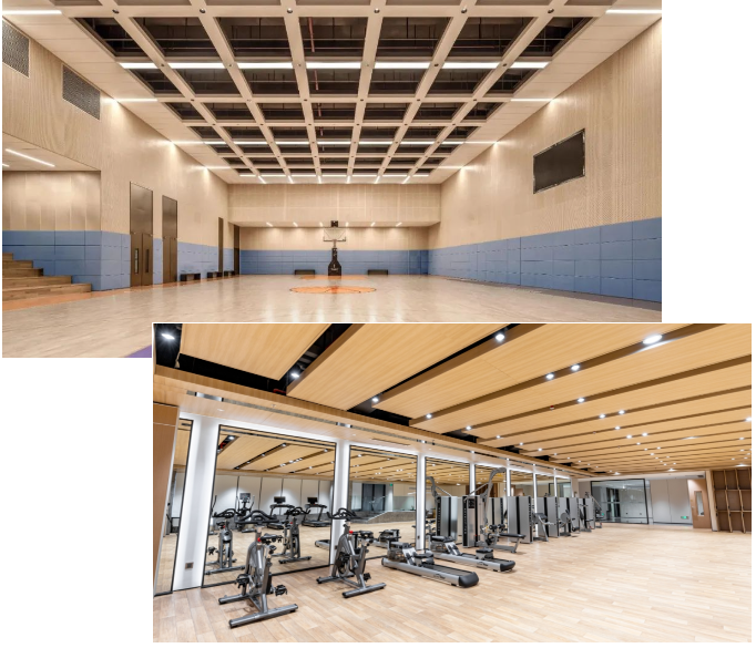 此外,泳池天花還以高密度沖孔材質(zhì)設(shè)計減弱噪音,營造寧靜的游泳體驗。菱形的燈光如同鉆石切割面,充滿線條感,燈光溫和舒適,為業(yè)主的游泳體驗增添一份動感和細膩。