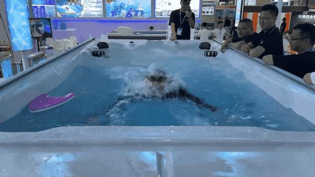其中,展位中呈現(xiàn)的戴思樂®無邊際成品泳池格外搶眼,以其集成過濾、循環(huán)、加熱、按摩和沖浪等功能吸引了眾多目光,且特別配備了高品質(zhì)的保溫膜蓋。好奇的觀眾紛紛爭相體驗泳池中的水質(zhì)、水溫和水流。
