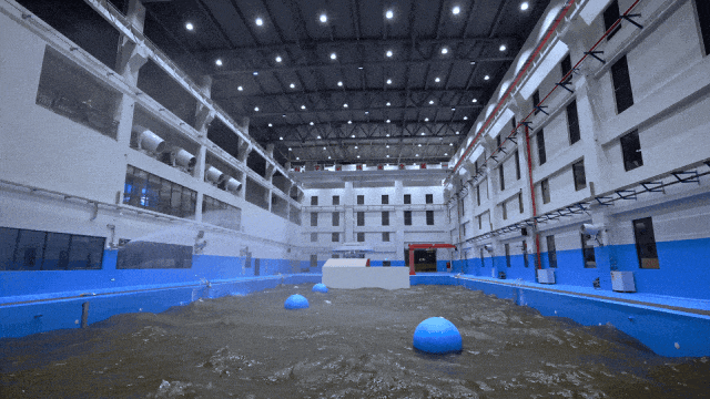 環(huán)境仿真方面,臺風(fēng)訓(xùn)練館配備了造浪球、風(fēng)機、特制燈光、音響等設(shè)備,能夠讓場館內(nèi)達(dá)到環(huán)境最大風(fēng)力≥12級,最大降雨量≥50mm/h,最大環(huán)境噪音≥120db,最大造浪高度≥1.2m,基本復(fù)現(xiàn)最大12級臺風(fēng)災(zāi)害下,風(fēng)、雨、浪等復(fù)雜的救援環(huán)境。