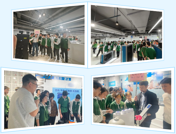 講解員耐心細(xì)致地介紹了泳池設(shè)備、熱泵產(chǎn)品及直飲水系統(tǒng)等工作原理,并延伸至它們在不同場景中的實際應(yīng)用。同學(xué)們專注地聆聽講解,不時舉手提問,與講解員展開熱烈互動。
