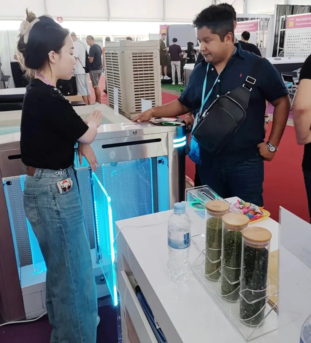 這套智能門禁系統(tǒng)通過高精度生物識別技術(shù),實現(xiàn) ﹤1 秒快速識別,僅需輕輕一掃手掌,即可無感通行。“Oh, it's quite interesting.”現(xiàn)場眾多境外采購商好奇地反復(fù)嘗試,對其穩(wěn)定性與便捷性贊不絕口。