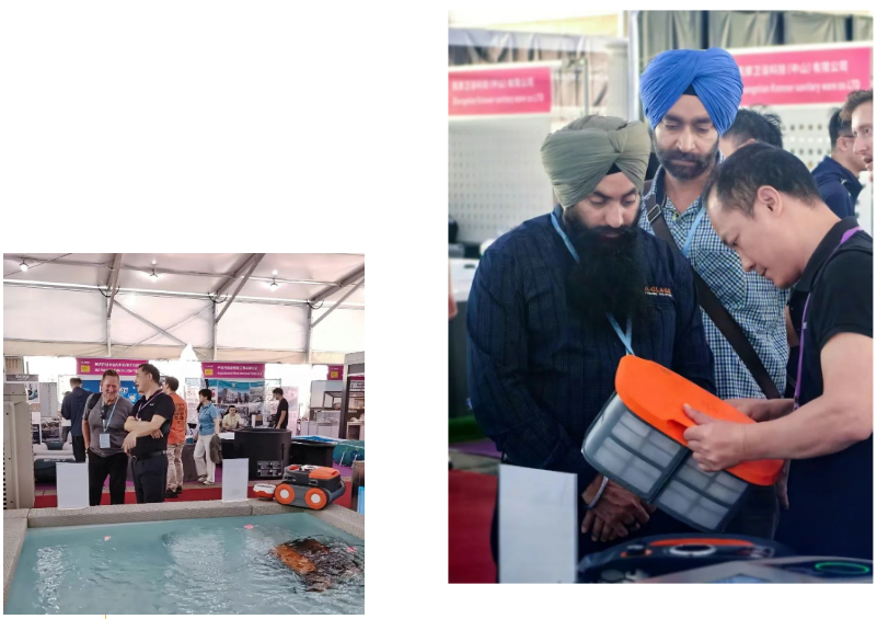 “Wow your pool is pretty good!”藝術(shù)SPA區(qū)域驚嘆聲此起彼伏。期間,戴思樂®智能無線泳池清潔機器人上演了一場極具科技張力的“清潔秀”。它憑借“7核探測+動態(tài)修正”智能導(dǎo)航系統(tǒng),真正實現(xiàn)無死角清潔,并在藝術(shù)SPA池壁上輕松完成“爬墻”、“爬坡”等高難度動作。